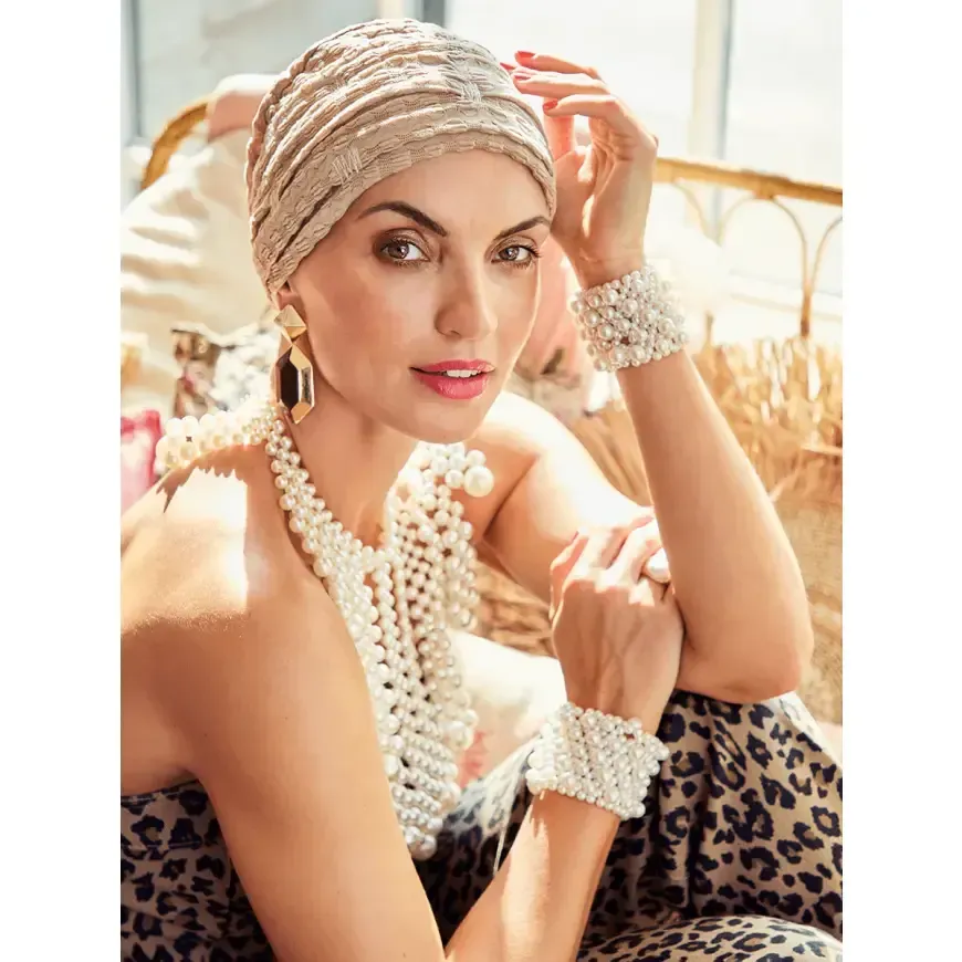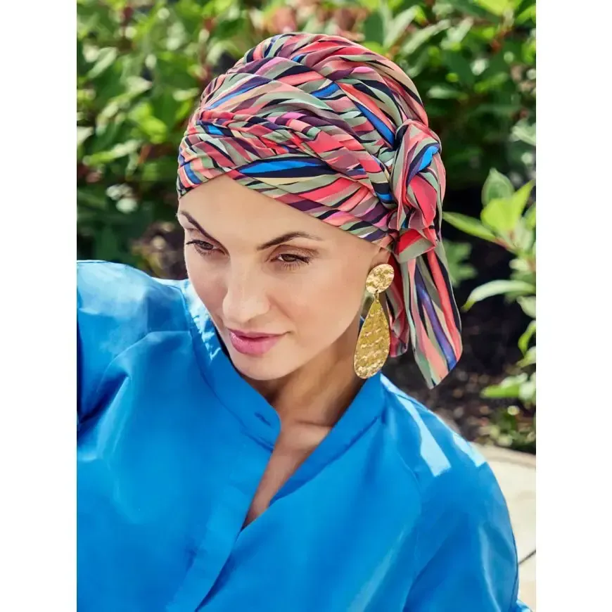 Deze sjaaltjes en turbans zijn steeds ontworpen met speciale aandacht voor de gebruikte materialen en de beste pasvorm. Zo hebben wij een mooie collectie slaapmutsjes, zodat je je ook 's nachts comfortabel kan voelen. In de winter voorzien we een mooi aanbod in aangenaam warme mutsjes en voor de warmere dagen hebben we lichte hoofddoekjes om voor de nodige afkoeling te zorgen, eventueel te combineren met een mooie zomerse hoed.